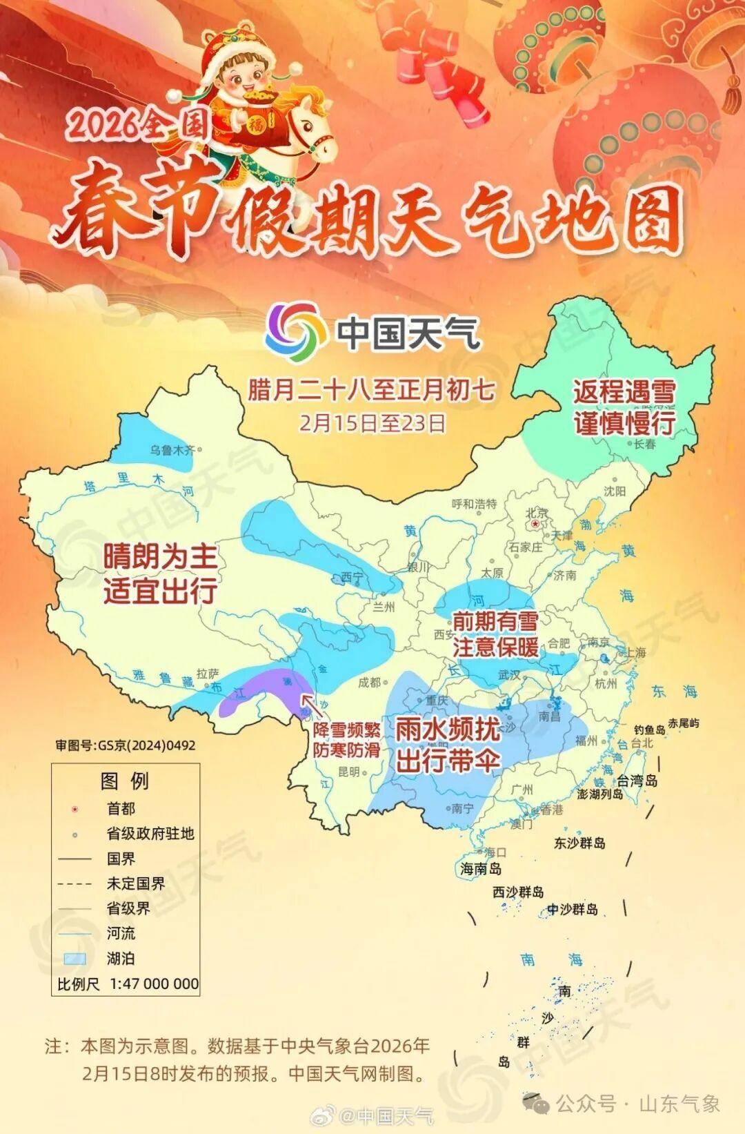全国春节假期天气地图