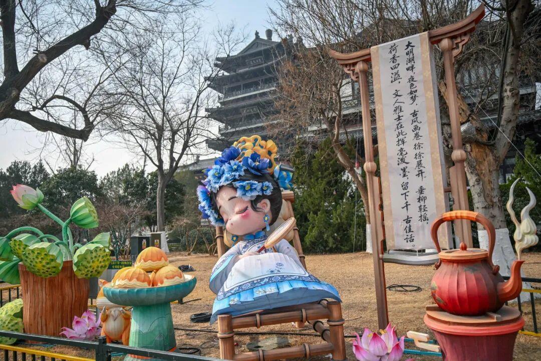 趵突泉巧妙融合瑞马贺岁与文人风骨,大明湖畔“少女雨荷”系列Q版灯组惊艳亮相。