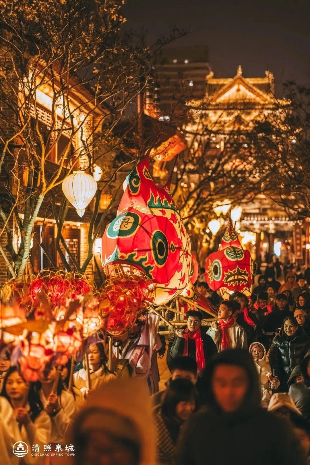 今年灯会以“易安灯会”为主题,打造水陆交织、灯戏交融的梦幻场景。当千盏鱼灯点亮明水古城的夜空,一场穿越千年的宋韵光影盛宴就此开启!