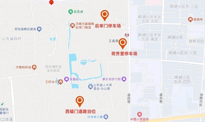 2.泺文路停车场:历下区泺文路与泺源大街辅路交叉口东南方向43米
