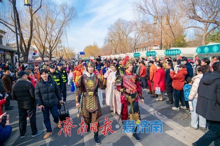 活动精心规划行进式演出路线,设置演艺、巡游活动近50场,将明湖市集化作流动的新春舞台。高跷、锣鼓秧歌、舞龙舞狮等经典民俗表演轮番登场,马灯舞、西乐合奏、锦鲤送福等特色互动演艺精彩亮相,以“门神”秦琼、尉迟恭为首的古风巡游惊喜现身,为市民游客护平安,送吉祥,传递新春的美好祝福。连续六天好戏连台,让大家沉浸式体验浓郁年俗风情。