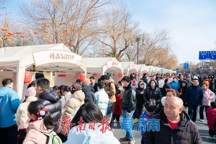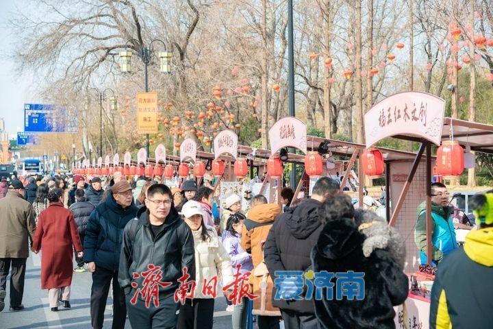 2026年明湖市集以“庙趣泉韵马力全开”为主题,在大明湖路精心布设了60个特色展位,集非遗手作、创意潮品、品牌好物三大核心业态,让传统民俗与潮流创意碰撞交融,打造活力满满的春节消费新场景,充分展现济南“城湖相依,古今交融”的城市魅力。