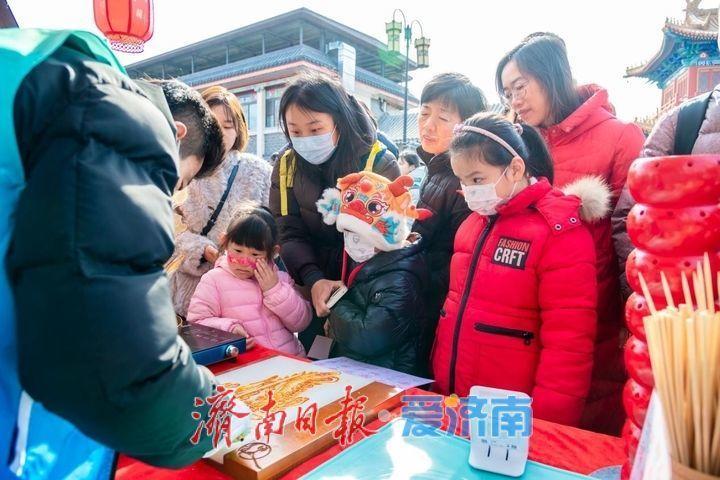 非遗手作展区汇聚泉城非遗精品,古法吹糖人、木质皮影、非遗宋锦、葫芦烙刻、草本香囊、面塑、翻花等非遗项目集中亮相,手艺人现场展示技艺,让游客近距离触摸传统工艺的匠心巧思,感受非遗文化的独特魅力。