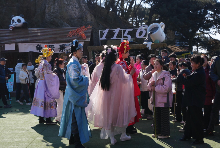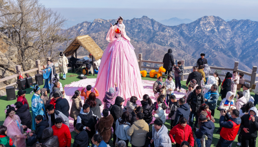 2026年丙午马年新春,沂蒙山龟蒙景区以“登龟蒙·接福运”为主题,推出第十四届蒙山春节祈福庙会活动,打造了一系列沉浸式、互动式、体验式新春活动,飞天神女、仙官赐福等众多NPC演艺互动,非遗市集、仙翁轻咖、网红打卡点等多元业态齐聚一堂。活动期间客流火爆、好评如潮,真正成为了“人气旺、氛围浓、口碑好”的登高祈福、休闲度假热门目的地。