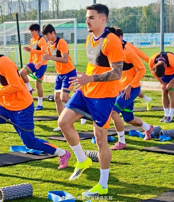 闪电体育2月21日讯 2月20日,山东泰山队在上海正式开启第三阶段冬训。下午训练前,球队为新外援阿尔瓦罗举行了简短的欢迎仪式,欢迎他加入泰山队大家庭。