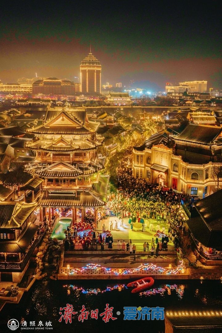 明水古城打造“梦幻戏剧嘉年华”,融合传统非遗与跨国戏剧,每天300场演艺轮番上演,“提灯赏泉”“竹筏鱼灯秀”等主题活动勾勒宋韵沉浸体验;济南方特百名NPC陪玩、千架无人机秀、新春灯会大放异彩;融创乐园推出天官赐福百戏过大年、巨型孔明灯打卡等特色项目,融创海世界创新推出的全国首个宋词沉浸式水下剧场《蝶恋花》将古典文学与水下表演完美结合;明府城举办“礼韵戏集”系列活动,市井欢歌、快哉清照、卖花货郎、渔灯祈福等微演艺互动巡游轮番登场;鹊华中新园“狮城游园会”,打造济南首个“娘惹味”新年,实现传统年俗与南洋风情的创新融合,为游客带来别样年味;九曲黄河万里情主题街区将浓郁的年味氛围与沉浸式体验深度融合,成为众多游客争相打卡的热门目的地。