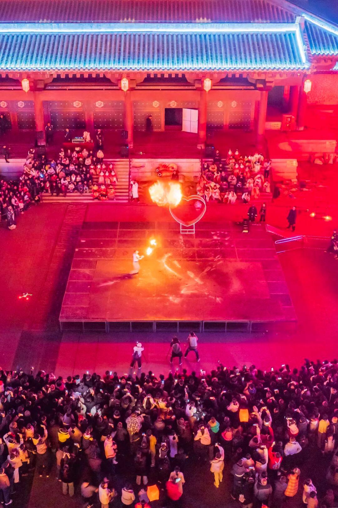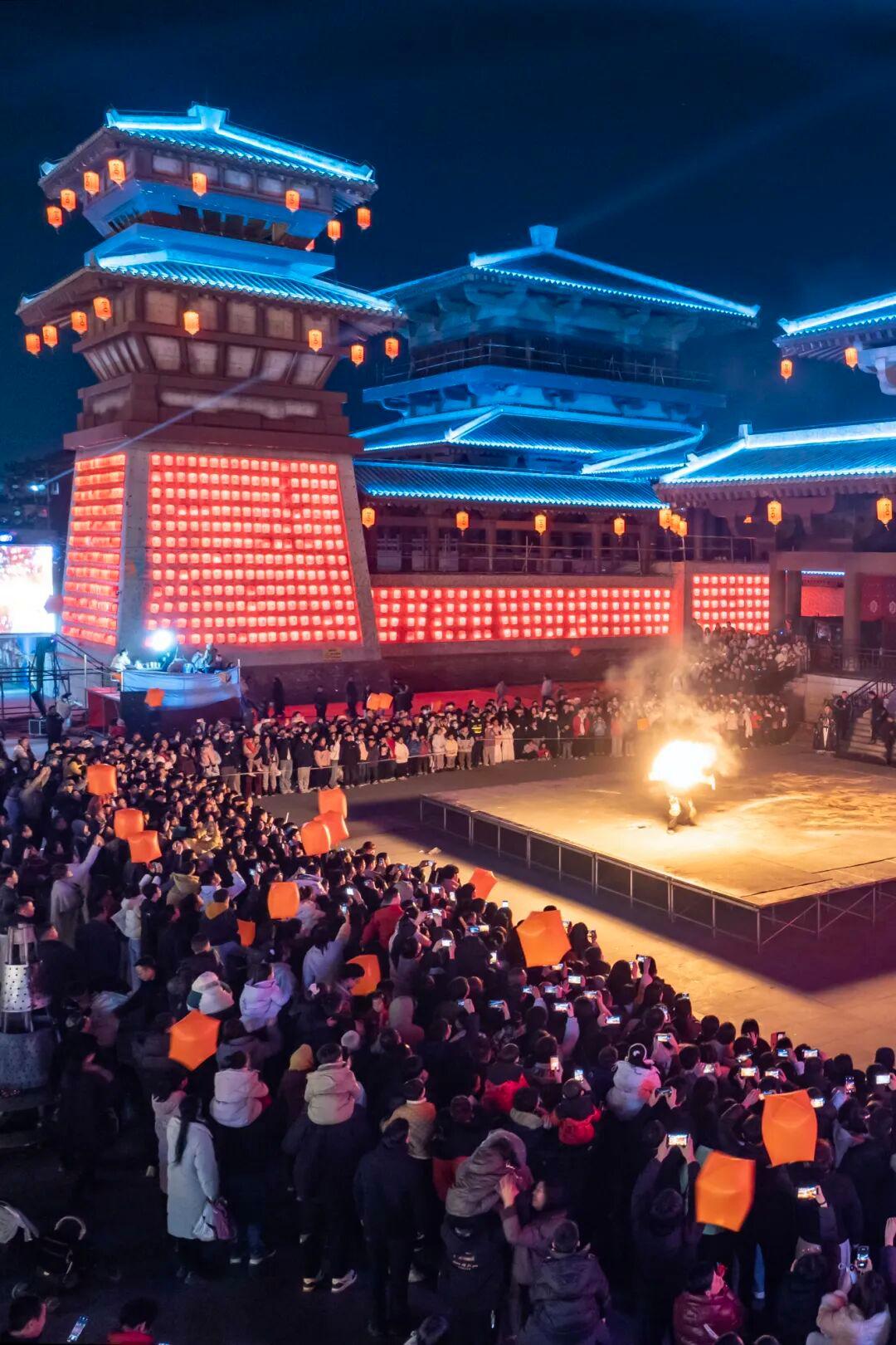 人潮涌动不夜天,古韵新风两相宜。从清晨到深夜,古城的脉搏始终热烈跳动。国潮演绎区里,传统戏曲与现代节奏碰撞出别样火花;仙侠市集中,身着古装的NPC(非玩家角色)与游客擦肩而过,恍若穿越时空;祈福区里,一盏盏孔明灯载着心愿升空,将夜空点缀得星星点点。非遗火秀表演时,匠人将滚烫的铁水抛向高空,刹那间金花四溅,如流星雨坠落人间,引得满堂喝彩。花灯巡游的队伍穿街而过,所到之处,皆是欢呼与惊叹。