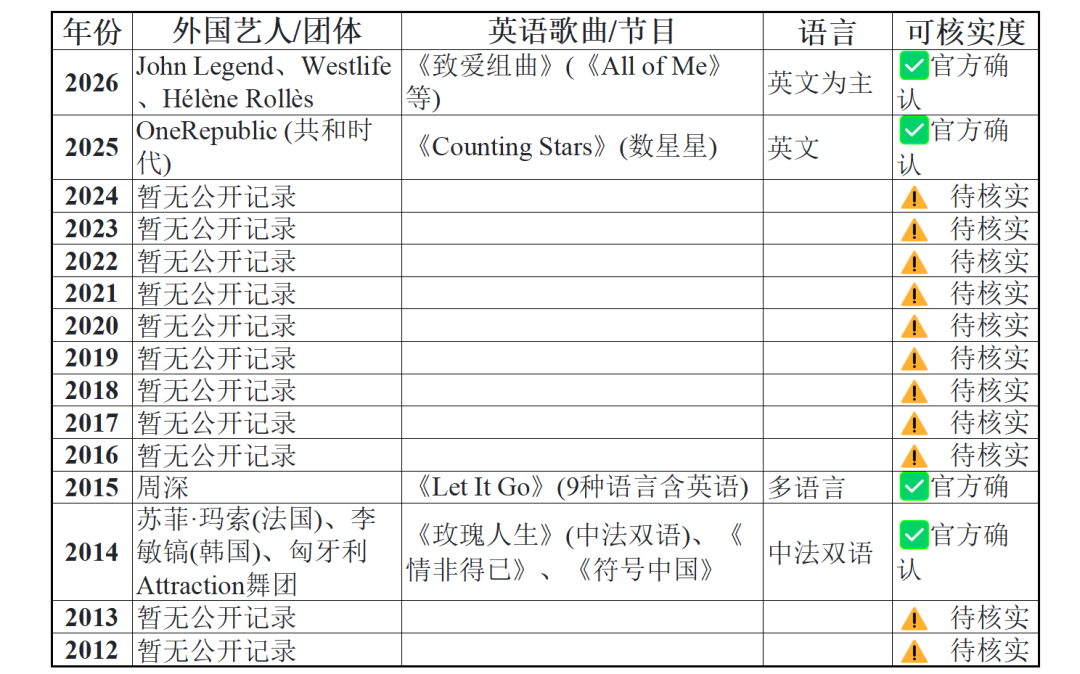千禧年后,外语元素或国外艺人出现在春晚的舞台上,比较少。