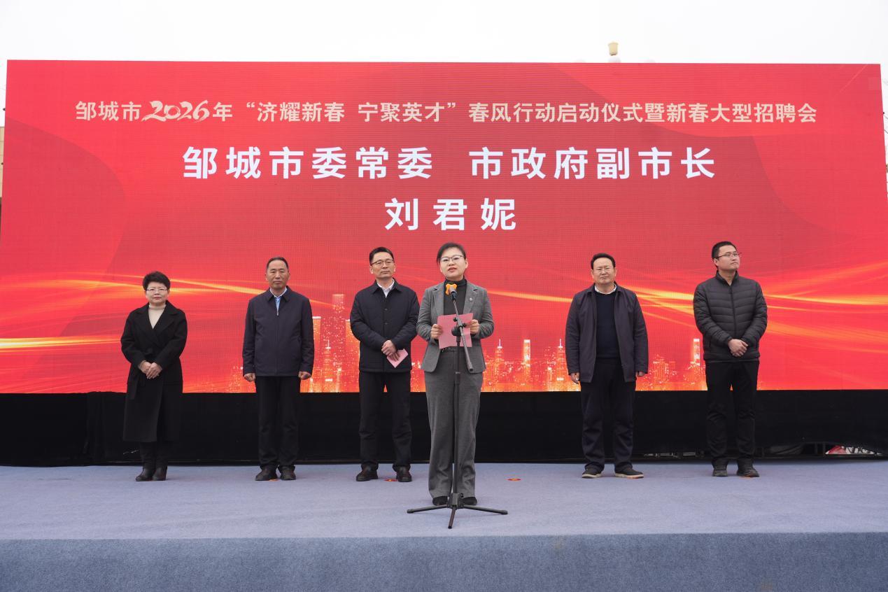 2月23日,邹城市2026年“济耀新春 宁聚英才”春风行动启动仪式暨新春大型招聘会在孟子大剧院广场成功举办。邹城市委常委、组织部长张新安,邹城市委常委、副市长刘君妮出席活动,邹城市委组织部、市人社局等市直有关部门、各镇(街)负责同志参加。