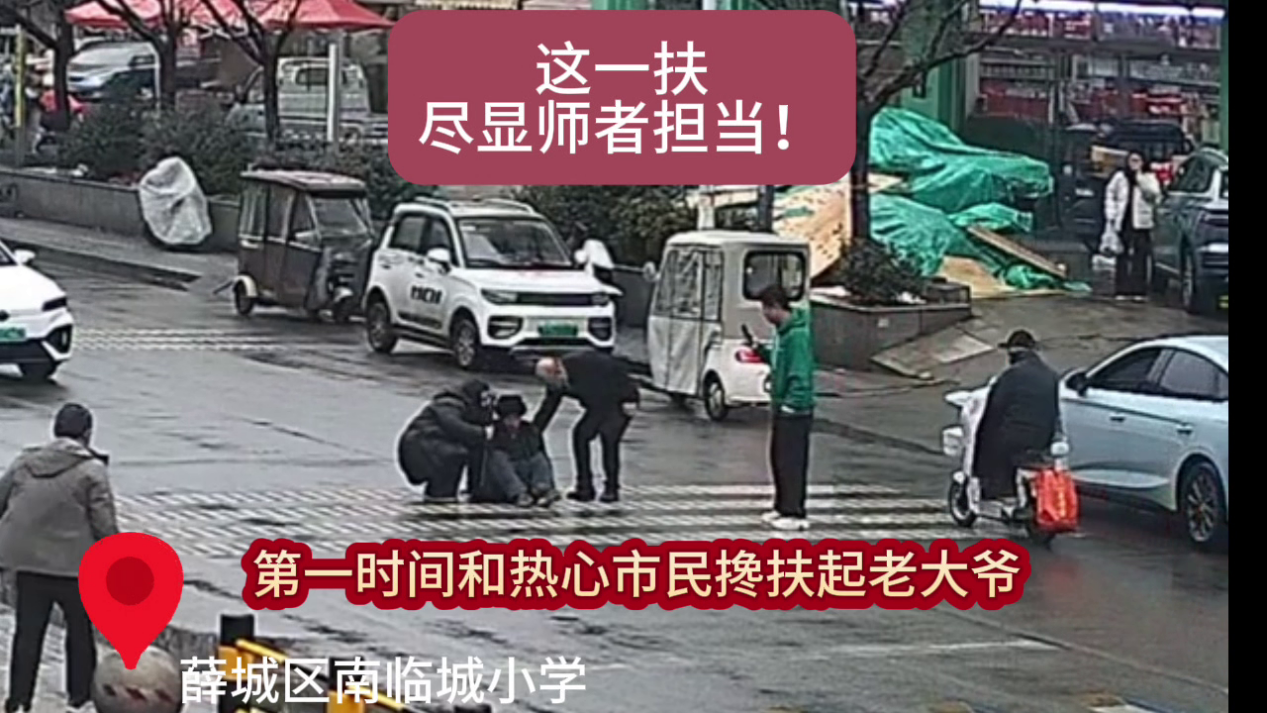 老人平安后连声道谢,过往行人得知是教师伸出援手,纷纷称赞不已。小小善举温暖街头,这一扶,尽显师者担当!