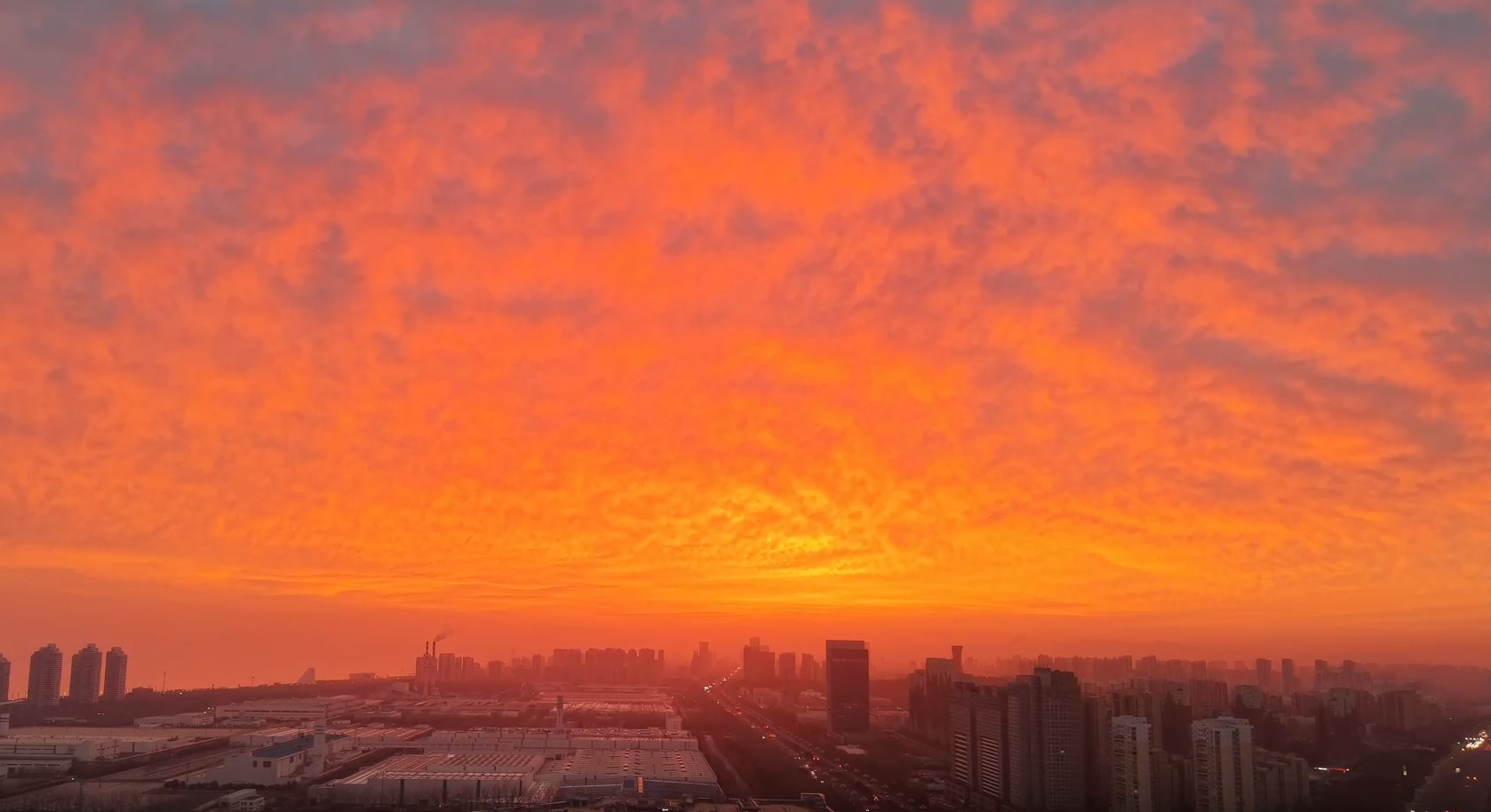 红红火火光芒万丈 烟台黄渤海新区迎马年首次绝美朝霞