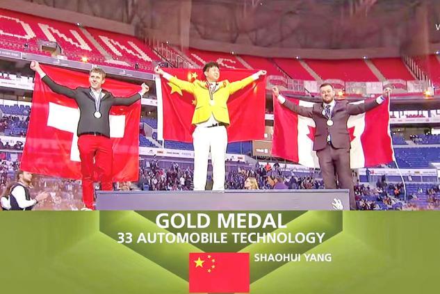 20岁的杨绍辉看着五星红旗在异国升起,热泪盈眶。五年前,他还是个中考失利的少年。2019年,在家人“技不压身”鼓励下,他走进山东工程技师学院汽车检测与维修专业。工学一体化的教学模式、实训车间里学长备赛的身影,点燃了他对汽车技术的渴望。2022年,学校大赛班选拔,一句“这是世界技能奥林匹克”让他毅然报名,开启追梦之路。