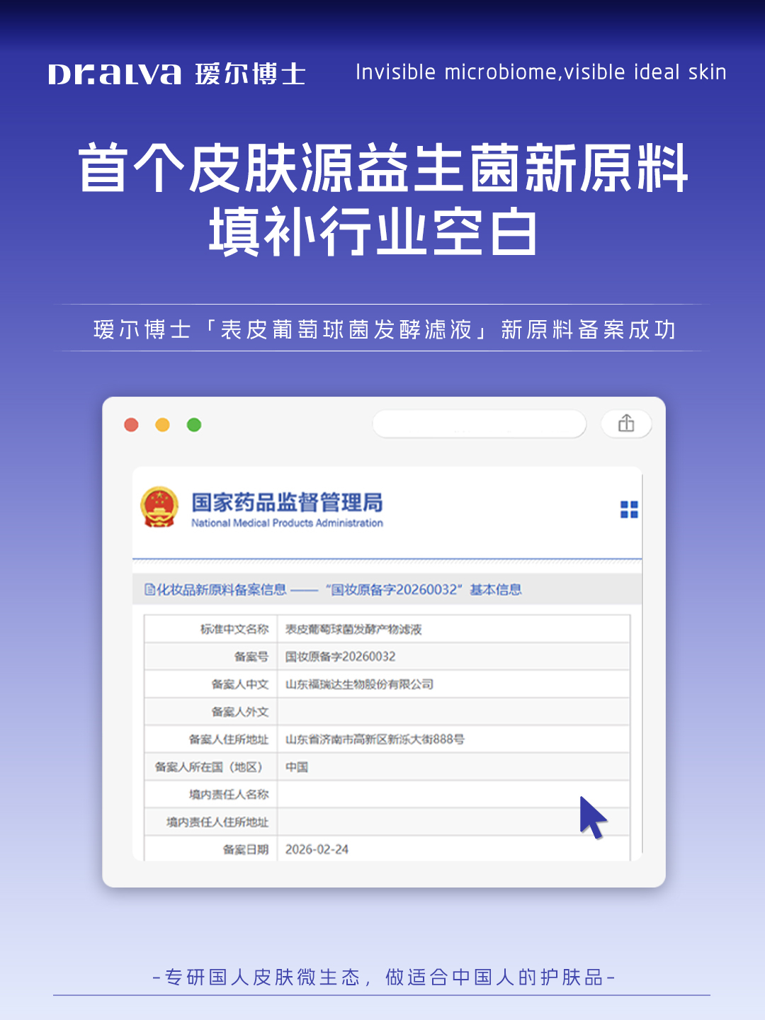 最近,一则看似晦涩的行业公告引起了记者的注意:国家药监局官网显示,福瑞达申报的「表皮葡萄球菌发酵产物滤液」新原料正式通过备案。这是国内首个皮肤来源的益生菌类原料,一举填补了行业空白。