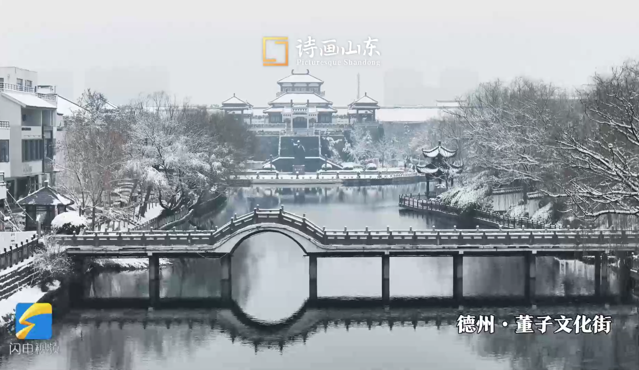 德州:春雪飘落董子文化街 勾勒出古风水墨画卷