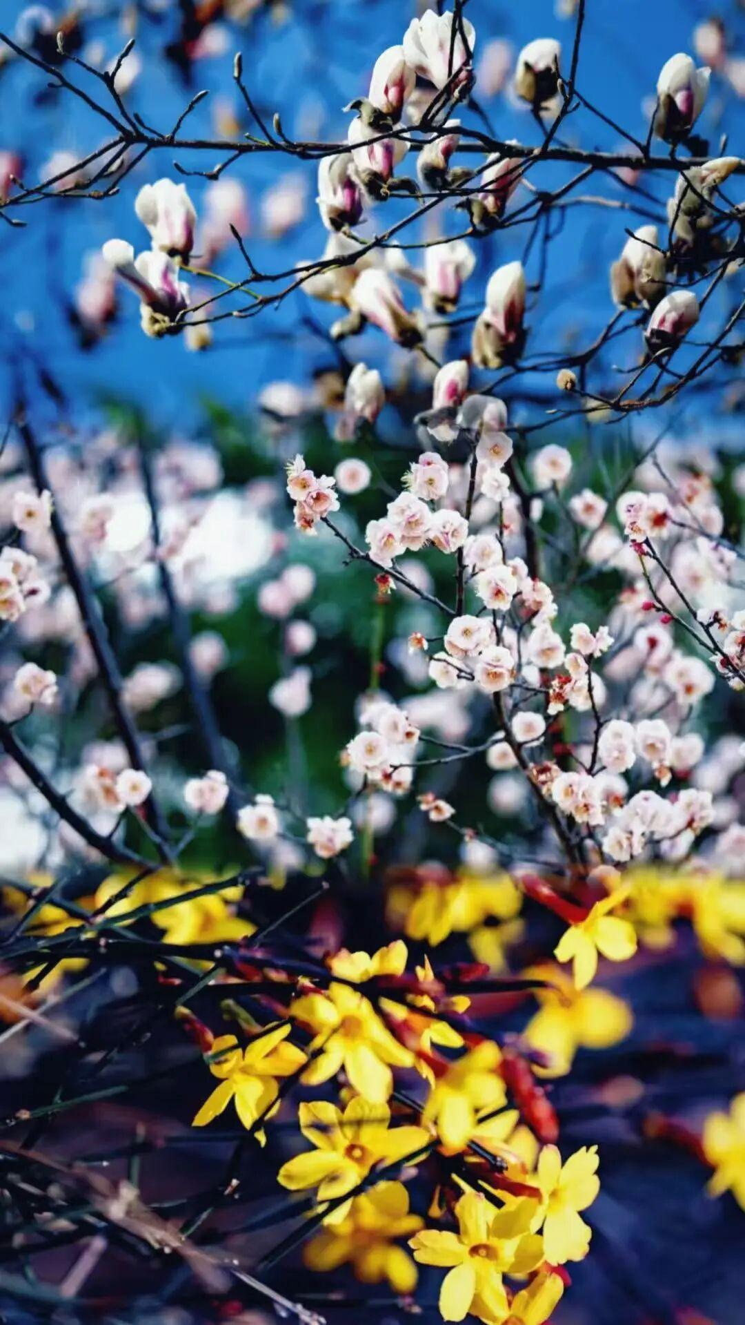 而那泼洒一地的金黄——是迎春花,春日最忠实的信使。它们不择地势,沿着小径,攀着栏杆,用最热烈、最无拘的姿态流淌着。走过这里,衣角仿佛都会沾上明亮的气息。