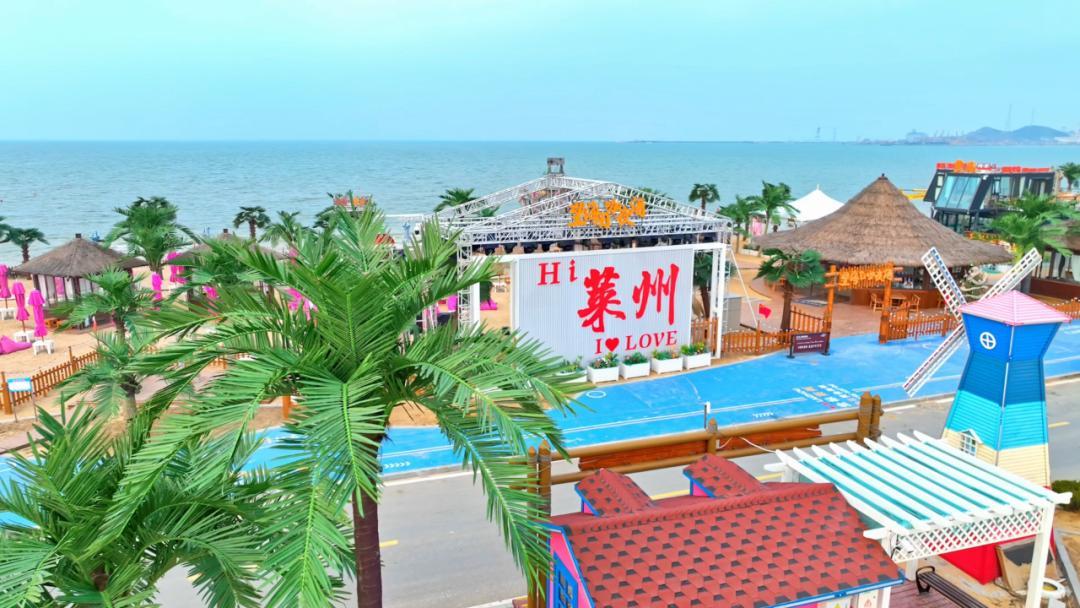 还有椰树打卡装置、Hi莱州文字墙、草编帐篷、风车……九宫格轻松凑齐;逛累了还能去一旁的咖啡店,看海放空,早春的惬意不过如此。