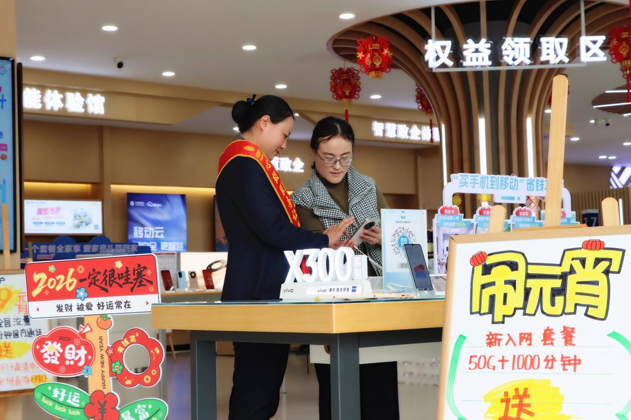 节日里的营业厅不仅有好玩的手工,更有实惠的回馈。活动期间,围绕“国补新机”政策,营业厅同步落实国家提振消费专项行动,推出数码产品购新补贴举措.同时,新入网套餐送手机、免费贴膜、设备清洗等亲情回馈服务,让等候办理业务的客户切实感受到移动“心级服务”的贴心与温暖。