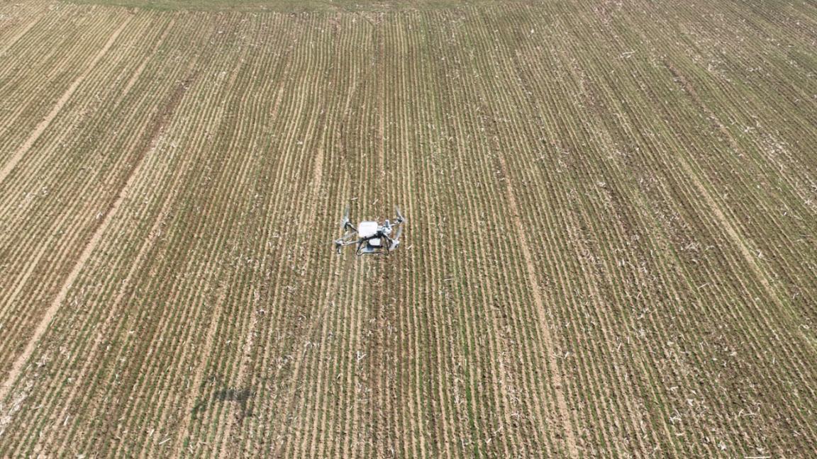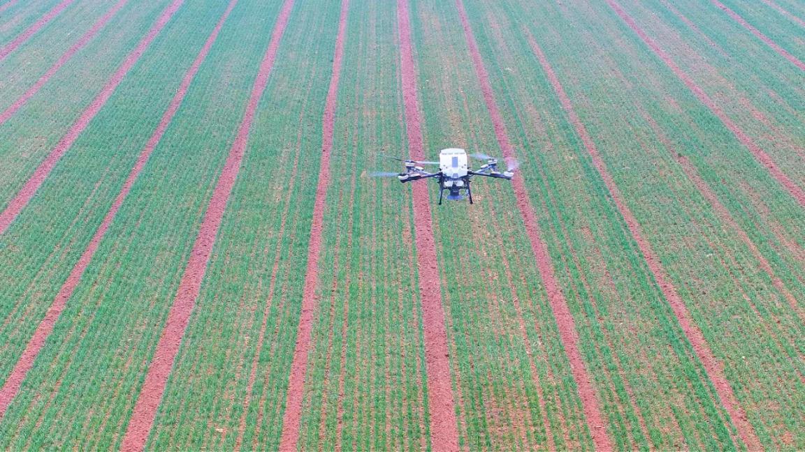 近日,满载肥料的农用无人机在技术人员的操控下腾空而起,沿着航线在岚山区的麦田上空匀速低空飞行,将颗粒尿素均匀地撒向田间,既避免了机械下地对麦苗的碾压,也大幅提升了施肥效率和均匀度。