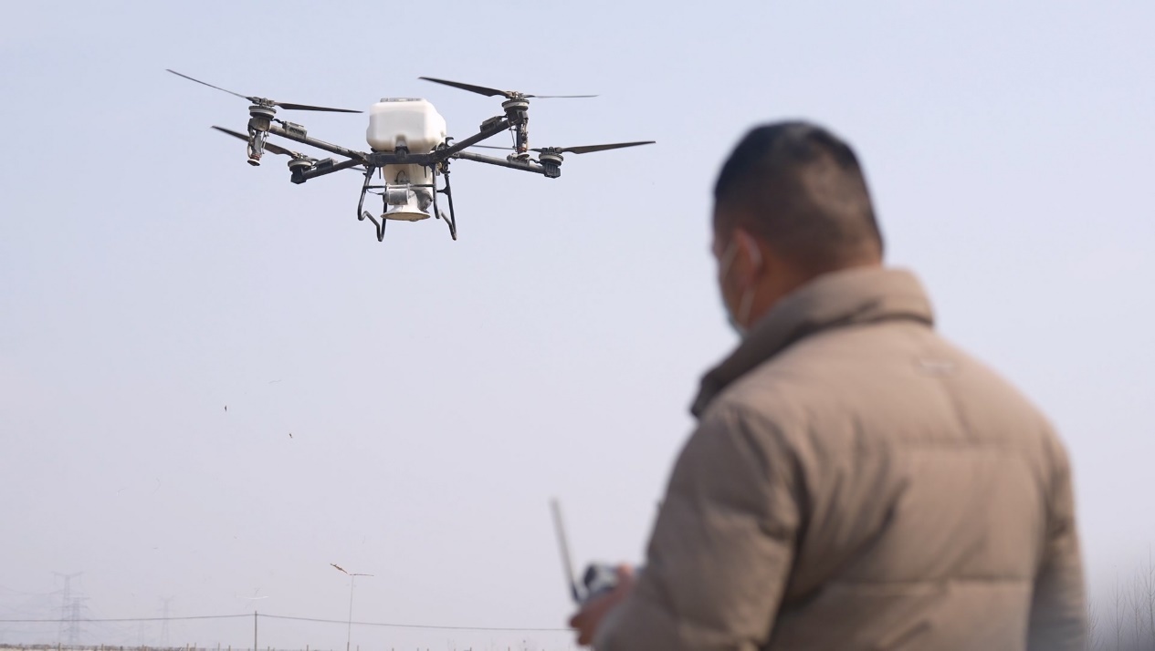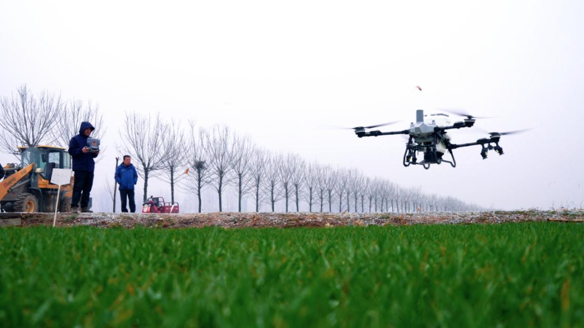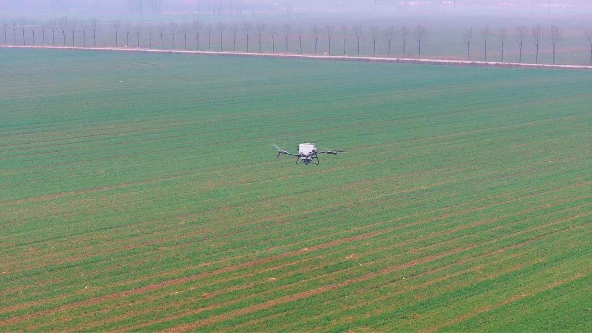 借着连日来的降雨,3月2日清晨,在五莲县许孟镇一处粮食种植农场,种植户听从农业部门的建议,由两名农技人员操控无人机为1300多亩冬小麦施撒尿素肥料,趁着雨后有利条件为冬小麦施肥,促进麦苗由弱转壮。