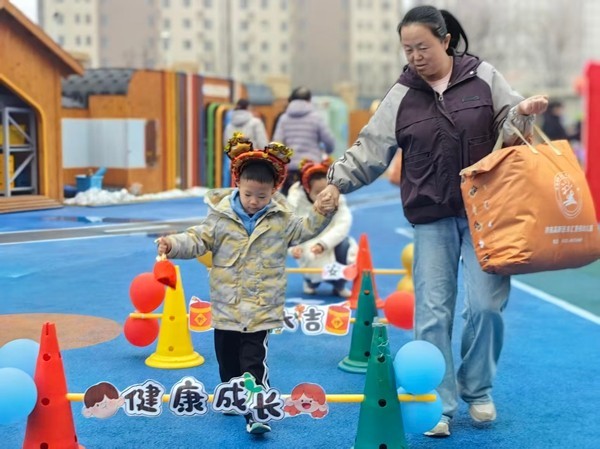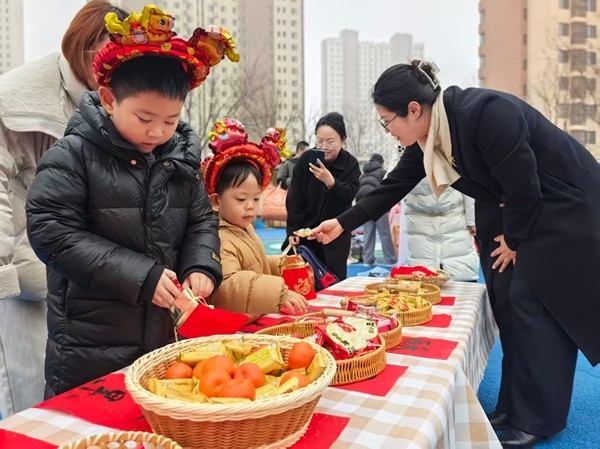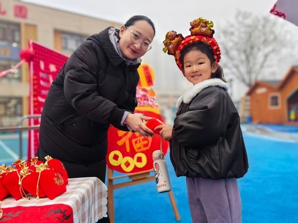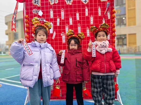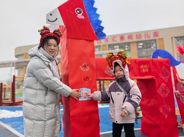 萌娃佩戴小马头饰入园,与家长共创福字作品,贴满福墙汇聚美好;亲手制作福袋,将吉祥与感恩装袋珍藏;抽取新年福签,收获幼儿园的真挚祝福;参与趣味闯关,在运动互动中锤炼勇气、凝聚团结。