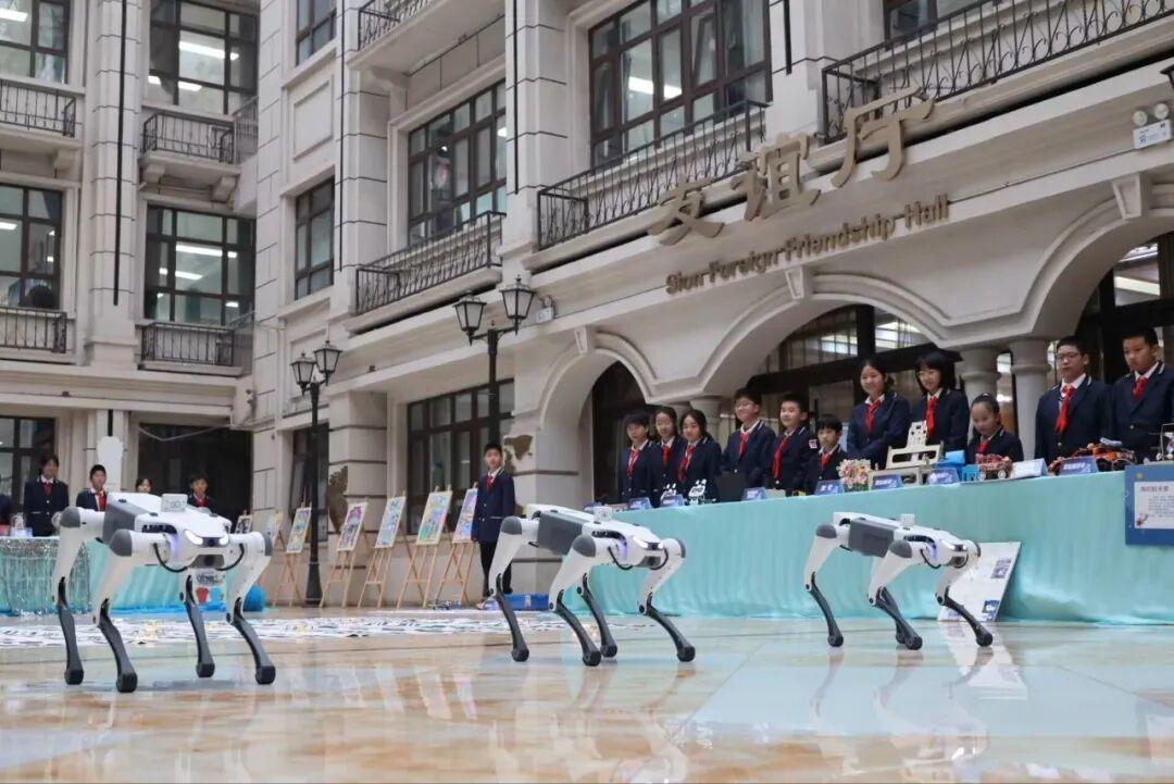新学期伊始,多所学校以科技为底色,打造了独具特色的开学典礼,为学子们送上别样的成长礼。3月4日,山东省济南济微中学全体师生齐聚操场,隆重举行以“骐骥驰骋 智启未来”为主题的开学典礼。本次典礼突出科技创新特色,融合无人机表演、机器狗表演、学生科技作品展示、科幻画展示四大科技元素,以“科技展演+作品呈现+互动体验+启新仪式”的多元形式,结合学校双语办学特色,立体呈现科技赋能教育、少年逐梦前行的校园风貌。典礼开始前,智能机器人早早等候在校门口,与同学们热情打招呼、亲切握手互动,孩子们也在心愿板上郑重贴上自己的新学期心愿,满怀憧憬开启新征程。