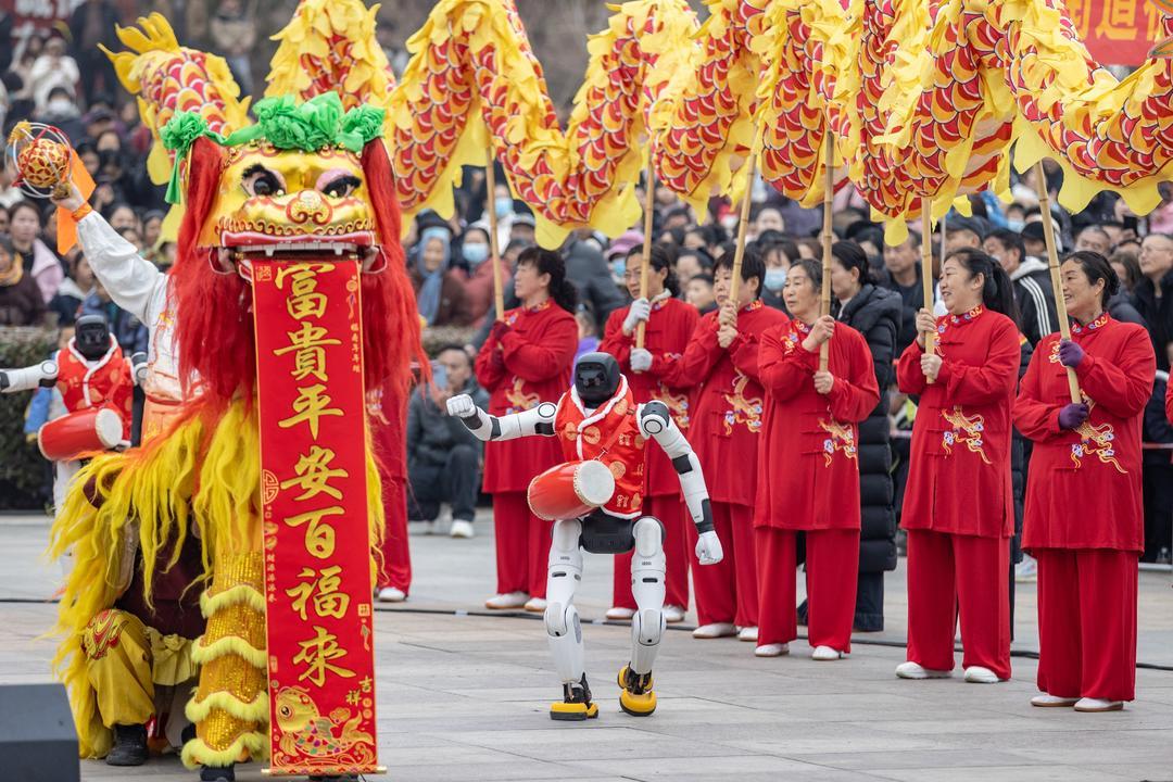 元宵佳节期间,科技元素与传统民俗碰撞出别样火花,让古老节日焕发新潮活力。3月3日,农历正月十五,金乡县金山公园人潮涌动,“蒜乡有好市·欢乐闹元宵”群众民俗文化队伍展演暨促消费活动火热开启。“快看,机器人也会打腰鼓!”伴随着动感的节拍,身法灵动的机器人身穿节日服饰,腰间别着小鼓,整齐列队、精准击鼓,瞬间点燃全场热情。龙狮队、高跷秧歌队、儿童民俗体验队等轮番登场,科技与民俗相融,让巡演更具新意。