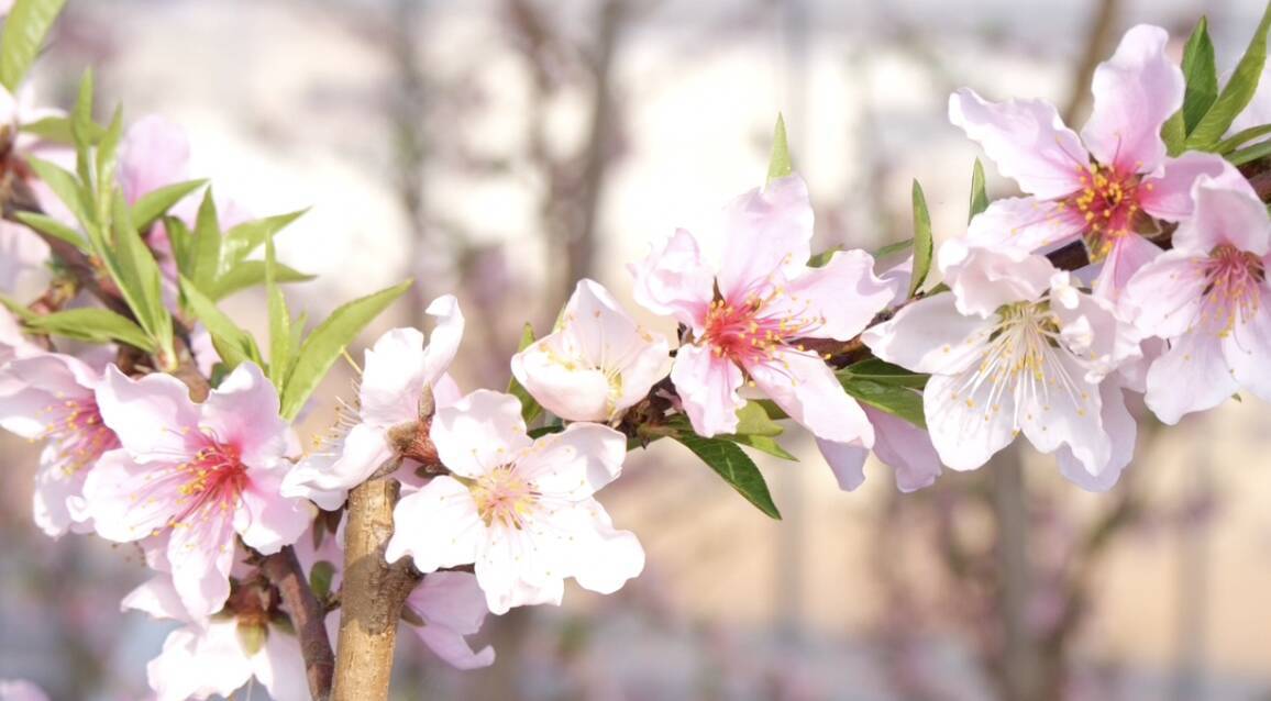 在泰安肥城大石关村的油桃大棚里,粉白相间的桃花竞相绽放,美不胜收。(来源:闪电新闻)