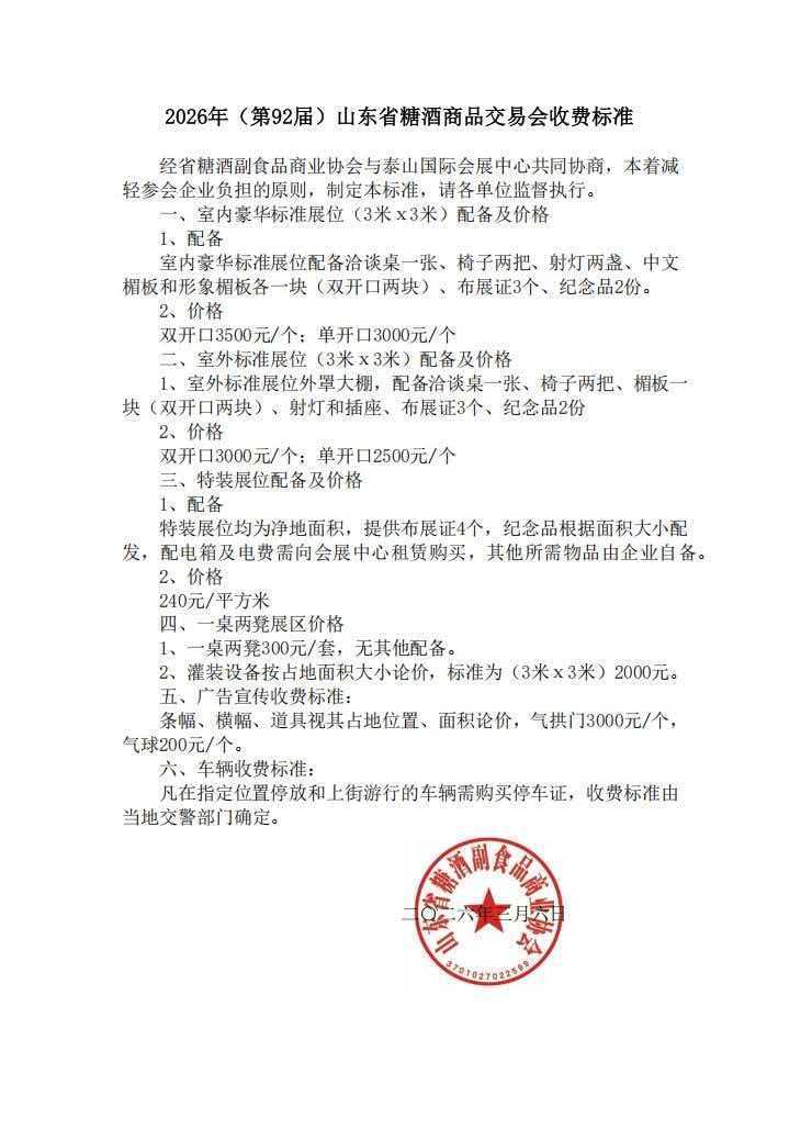 2026年春季(第92届)山东省糖酒商品交易会继续由山东省糖酒副食品商业协会主办,协办则由东道主企业泰山酒业集团和泰安传媒集团承担。