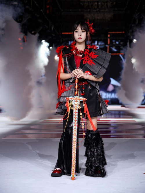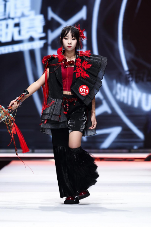 回望精英童模的赛场征程,赵诗雨的成长轨迹堪称 “励志范本”:2023 年首次征战便拿下赛事亚军,2024 年一举摘得冠军并当选全球代言人,2025 年更是以极致的创意演绎斩获主题赛冠军,完成从 “亚军” 到 “双料冠军” 的华丽跨越。尤其是 2025 年成都总决赛的主题赛上,她在统一黑色秀服上亲手点缀红色剪纸元素,将 “古今共生” 的赛事主题具象化,台步节奏随剪纸纹样巧妙调整,眼神笃定、演绎细腻,用创意与实力征服全场,成为赛事经典瞬间。连续三年出任全球代言人,这份荣誉的背后,是她日复一日的坚持,更是她对时尚与艺术的纯粹热爱。