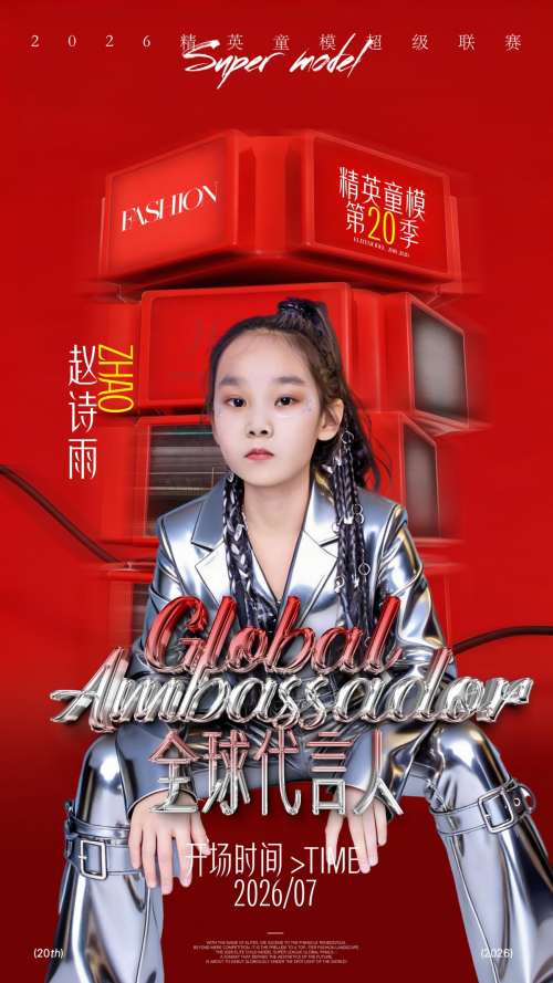 过往的荣誉,是前行的基石;全新的征程,是梦想的延续。作为 2026 精英童模超级联赛全球代言人,赵诗雨将以更成熟的姿态、更专业的表现,扛起榜样的旗帜。用自己的艺术理解与舞台表现,诠释传统与时尚的融合之美,为赛事注入更多文化内涵。