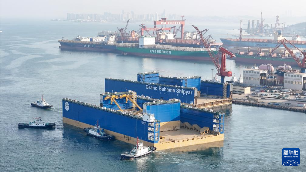 近日,12万吨举力浮船坞“Lucayan”号首段,从青岛西海岸新区北海造船3号码头离港。