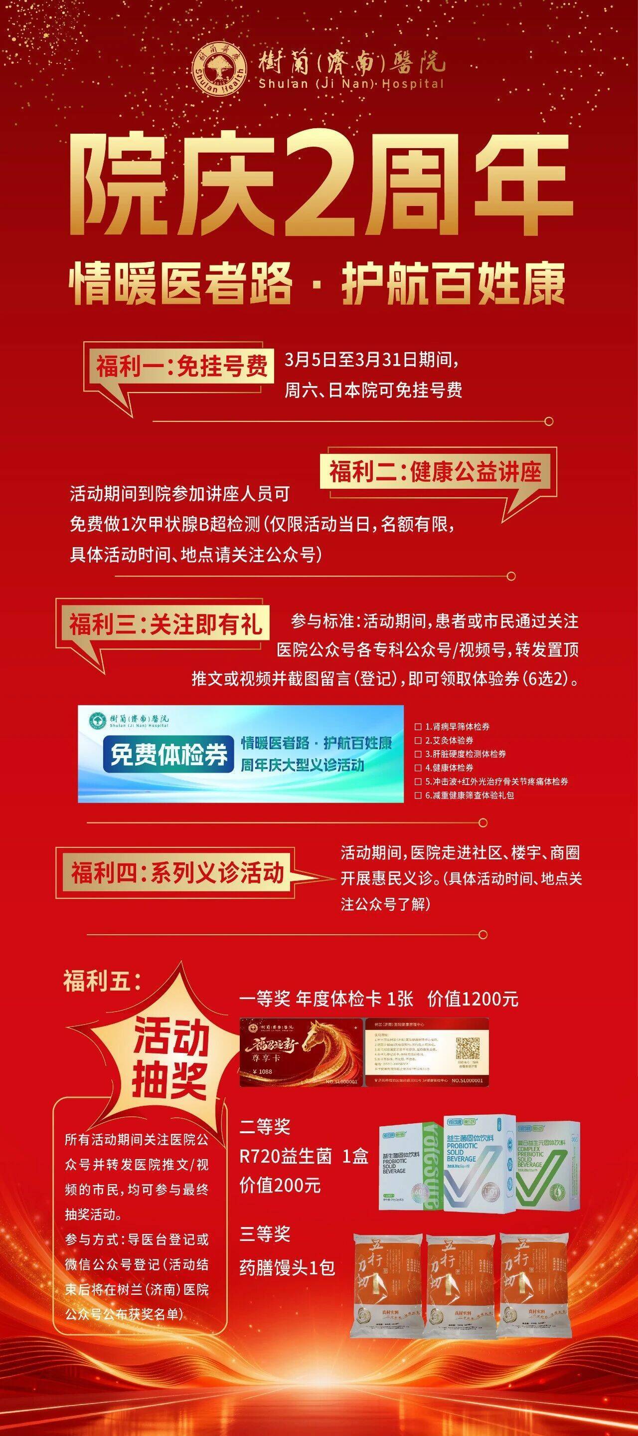 在建院两周年之际,树兰(济南)医院推出以“情暖医者路·护航百姓康”为主题的健康福利系列活动,通过多项惠民举措回馈市民的信任与支持。