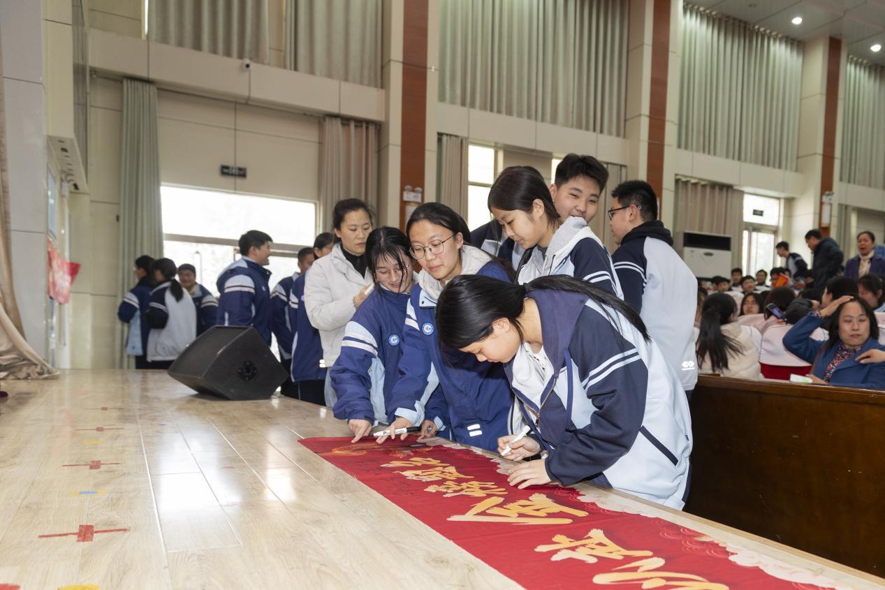 年级主任、教师代表、家长代表、学生代表先后发言,分别表达了恪尽职守、全力护航、暖心陪伴、奋勇冲刺的坚定决心。大会举行中考百日倒计时揭牌仪式,全体学生集体签名、宣誓,誓言铿锵、士气高昂。