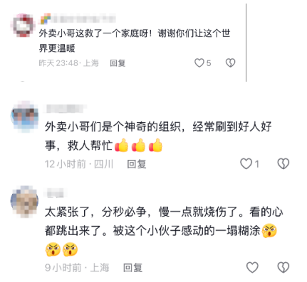 “我也是送外卖的,知道大家跑单都不容易。当时根本来不及想别的,就想着那火烧的是他这个人。”3月13日晚,许先生在接受记者采访时说:“虽然被烧伤了,但我不后悔。手伤了是小事,因为换回来的是同行的平安,也是背后一个家的平安,值了!”