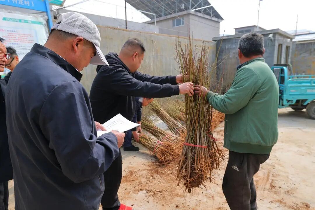 春风催新绿,植树正当时。植树节来临之际,程平君发起了“党建+电商+爱心助农”桃树新品种免费发放活动,对付庄等5个村的种植大户进行扶持。“这些树苗具有抗病性强、口感佳、上市周期长、市场效益好等优势。利用种植大户的龙头带动作用,引导大家更新换代,优化本地桃品种结构,推动果农增收。”