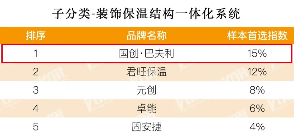 · 装饰保温结构一体化系统,连续四年排名第一;