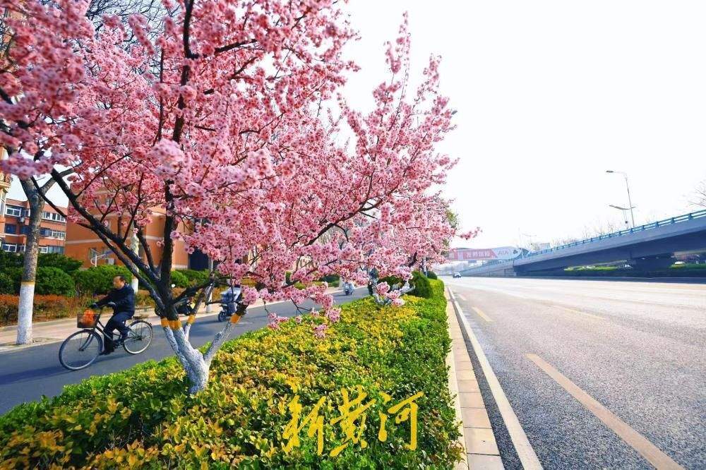 经十路最美春色上线 道路两侧美人梅迎风盛开