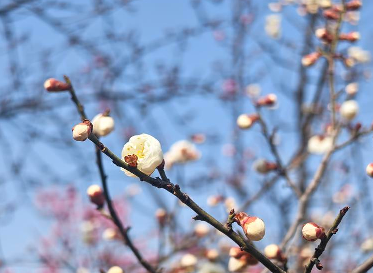 作为烟台春天的“第一花讯”,梅花率先带来了春的消息,吸引众多市民游客前来踏春赏梅,感受浪漫诗意。记者在南山公园看到,栖云阁西北角的梅花次第绽放,或粉或白,一朵朵、一簇簇缀满枝头、美不胜收。微风徐来,鼻尖便能闻到一缕淡淡的梅花香。