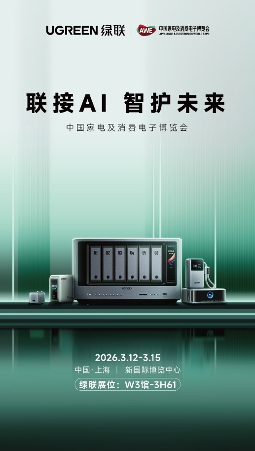 通过产品矩阵展示、跨界合作与思想交流,中国科技品牌绿联在AWE2026构建出一个以安全为核心、以场景为连接点的展示空间。3月12日至15日,上海新国际博览中心W3馆5H61展位,值得行业伙伴与广大用户莅临现场沉浸式体验,共同解锁全场景智能生活的全新可能。