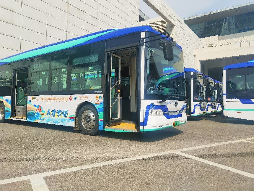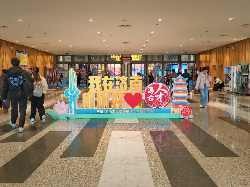 大会这天,车站人群中比以往多了许多朝气的面庞,他们多是来参加本次大会的年轻人。站外,出站口多了几辆印着“人才专线”的摆渡车。济南公交也开了多条专线,覆盖“四站一场”和地铁站点,求职者简单扫码就能免费乘坐。