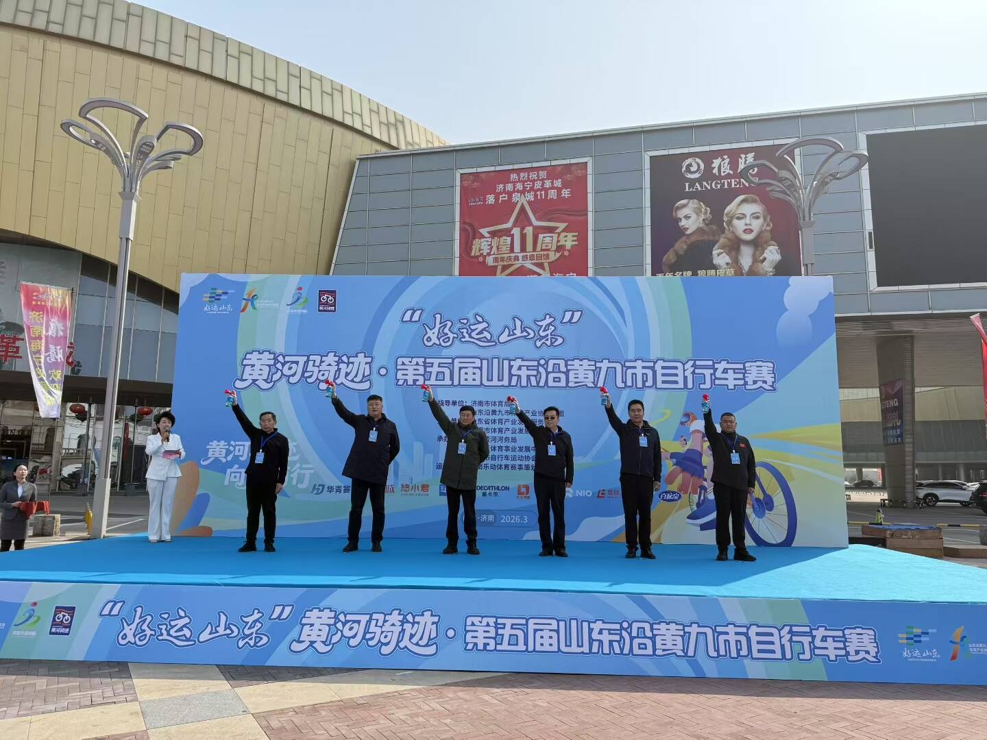 3月21日,“好运山东”黄河骑迹·第五届山东沿黄九市自行车赛在济南市槐荫区百联奥特莱斯(海那城)广场拉开帷幕。