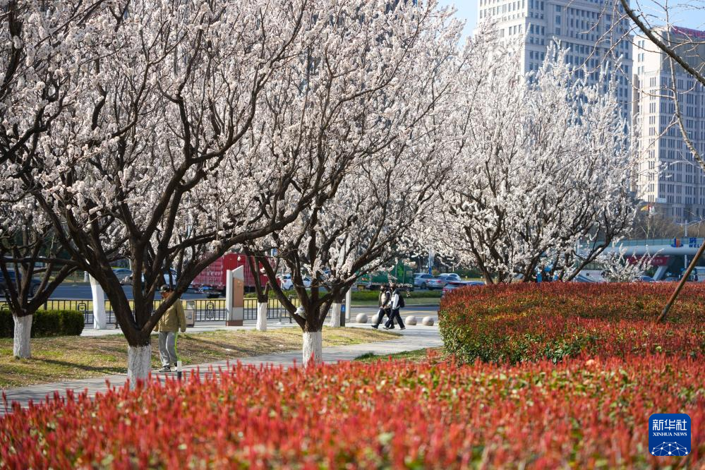 近日,山东省济南市气温回升,市区里杏花陆续盛开,为城市增添了春天的气息。