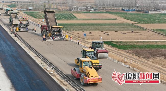 琅琊新闻网讯 3月23日,董梁高速公路临沂段正在加紧进行路面摊铺等施工作业,临沂市公路重点项目建设全面提速。