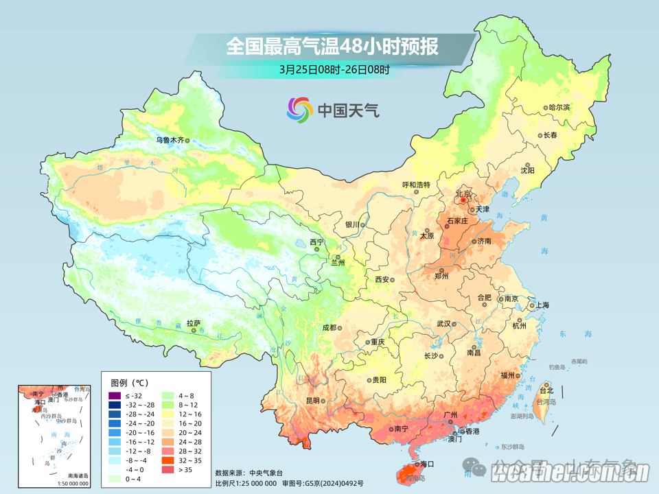 山东未来三天北方多地气温将冲高,25日前后达到近期高点,华北、黄淮以及辽宁部分地区,最高气温可达20℃以上,河北南部、河南北部、山东西北部将超过25℃,大面积创出今年来新高,暖如常年4月下旬甚至5月上旬。