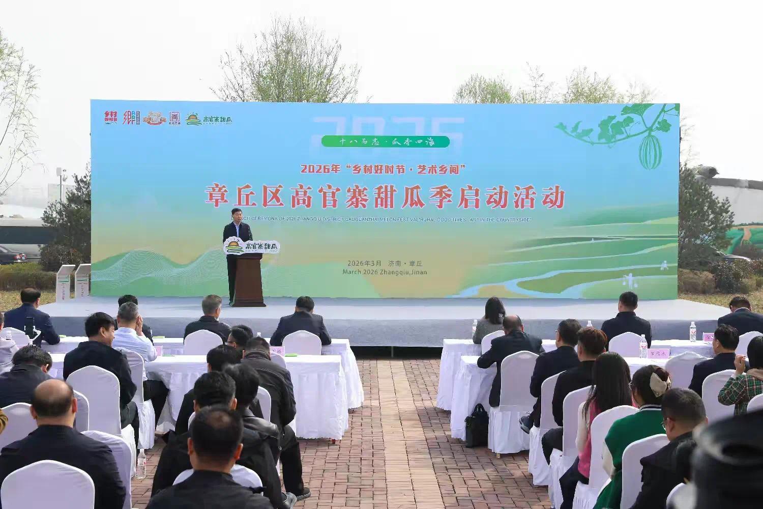 在章丘区北部高官寨街道,春天的阳光映照在甜瓜精品园里,瓜农们脸上洋溢着幸福的笑容。3月27日,2026年“乡村好时节·艺术乡间”章丘区高官寨甜瓜季拉开帷幕。