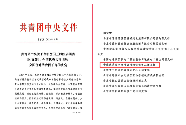 华能莱芜电厂检修部第二团支部注重政治引领,筑牢青年思想根基,先后荣获济南市五四红旗团组织、山东省省直机关最美团支部等称号,涌现出山东省劳动模范、全国青年岗位能手等先进典型。青年团队勇于攻坚克难,实现国内首套百万机组全国产数字化汽轮机监视仪表系统成功投运,取得关键核心技术自主可控的重大突破。围绕企业绿色转型与智能化发展,支部青年完成多项技术攻关,2024年以来获授权发明专利6项,获集团职工技术创新成果奖3项,“人工智能与边缘计算技术应用”项目入选2025年发电企业数智技术创新典型案例,5人在上级专业竞赛中获奖。