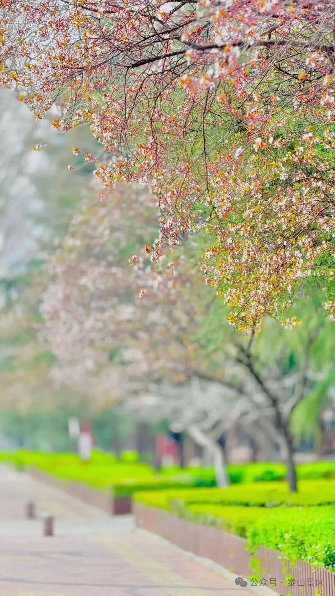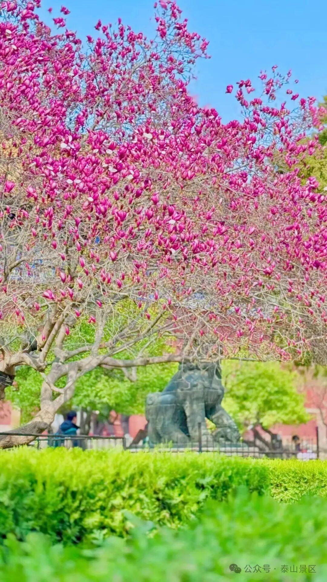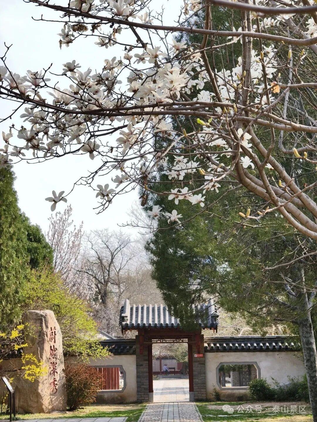 这里的春,是古建与繁花的对话,是历史与自然的交融。每一缕风都带着花香,每一片瓦都载着故事,漫步其间,仿佛能听见千年时光的回响,在草木荣枯间,读懂泰山的温柔与厚重。