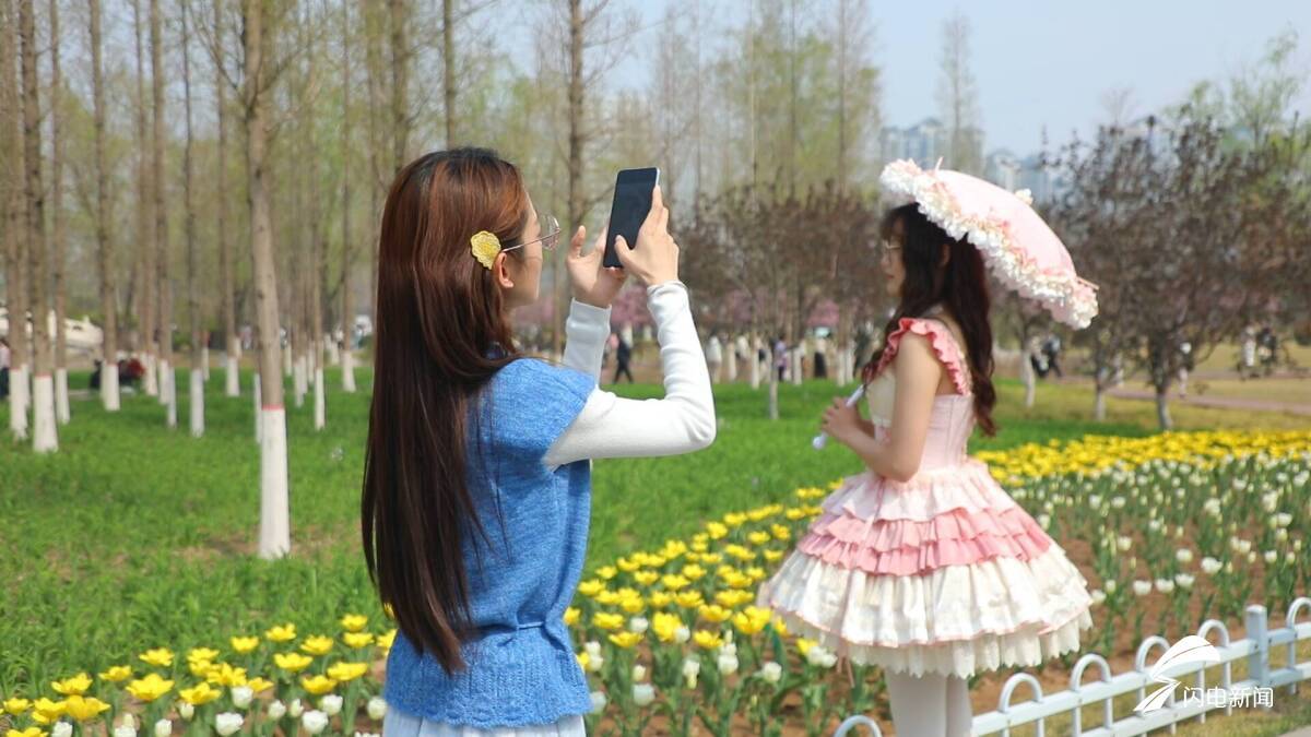 春天的凤凰苑植物园,变身五彩斑斓的花海。红的热烈似火,黄的明媚如光,园区精心培育的20多个品种、30多万株郁金香次第绽放,与美人梅、樱花、紫叶李的满树繁花相映成趣。游客们流连花间,仿佛置身童话世界,定格光影、细嗅芳香,将身心沉醉在烂漫春光里。“这里郁金香种类非常多,颜色也很多,特别适合和朋友一起来拍照打卡,我们已经拍了很多好看的照片。还有NPC互动,特别好玩,感觉逛一逛心情都变好了,特别适合大家来春游。”游客曹佳璇说。