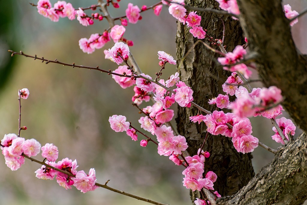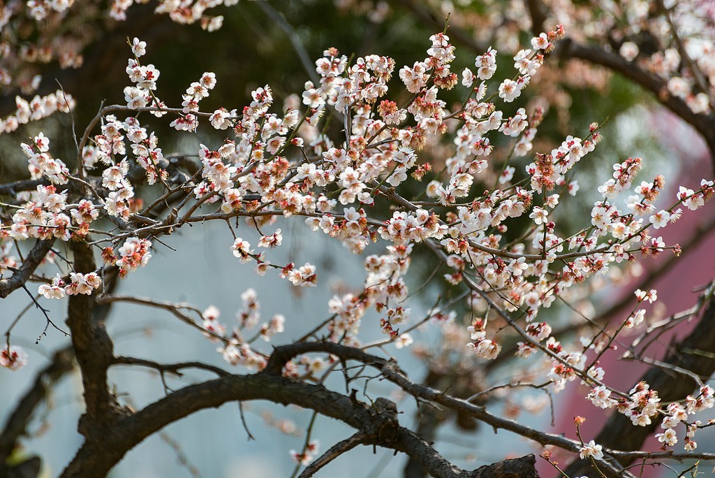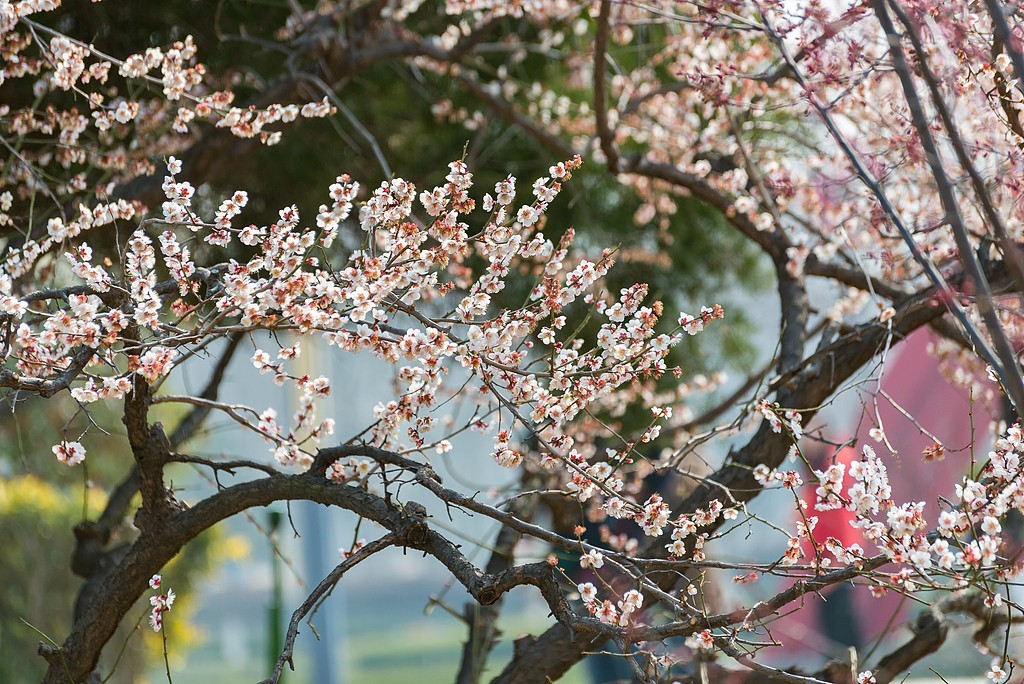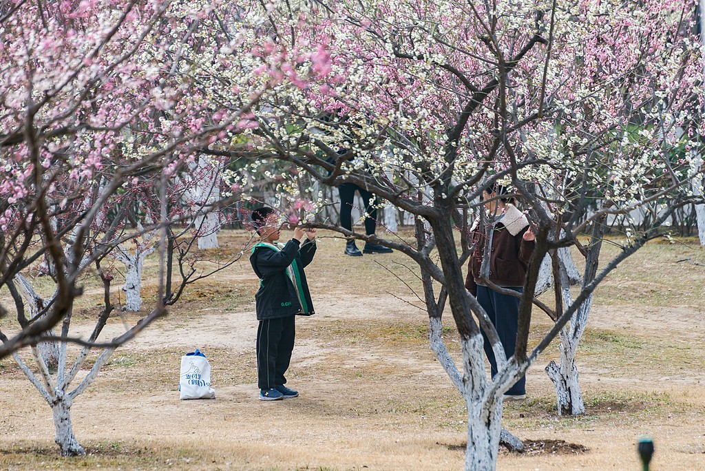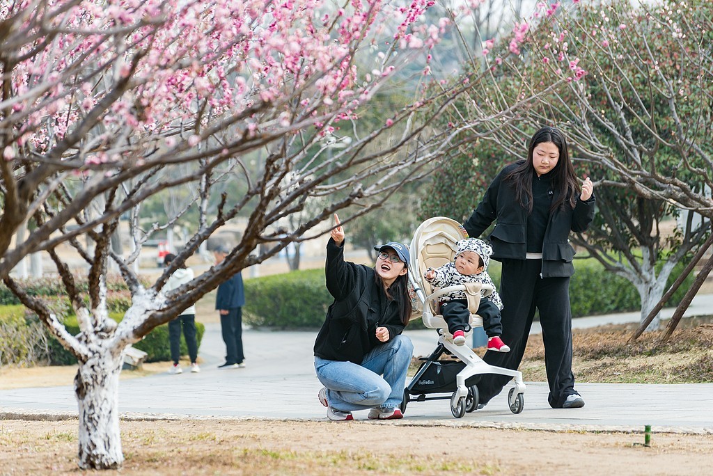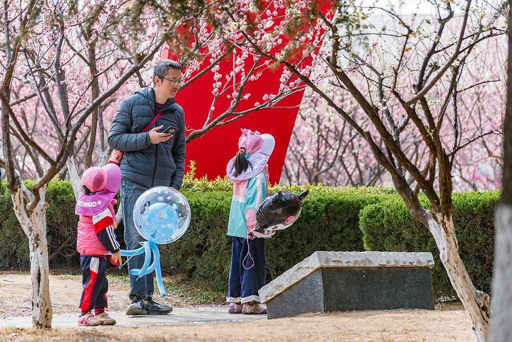 近日,临沂,雕塑公园梅花盛开,市民纷纷前来赏花拍照,踏青春游。