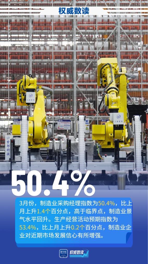 国家统计局服务业调查中心、中国物流与采购联合会31日发布3月份PMI指数。数据显示,3月份,随着春节后复工复产加快,产需两端同步扩张,制造业采购经理指数、非制造业商务活动指数和综合PMI产出指数均重返扩张区间,分别为50.4%、50.1%和50.5%,比上月上升1.4个、0.6个和1.0个百分点,我国经济景气水平回升。